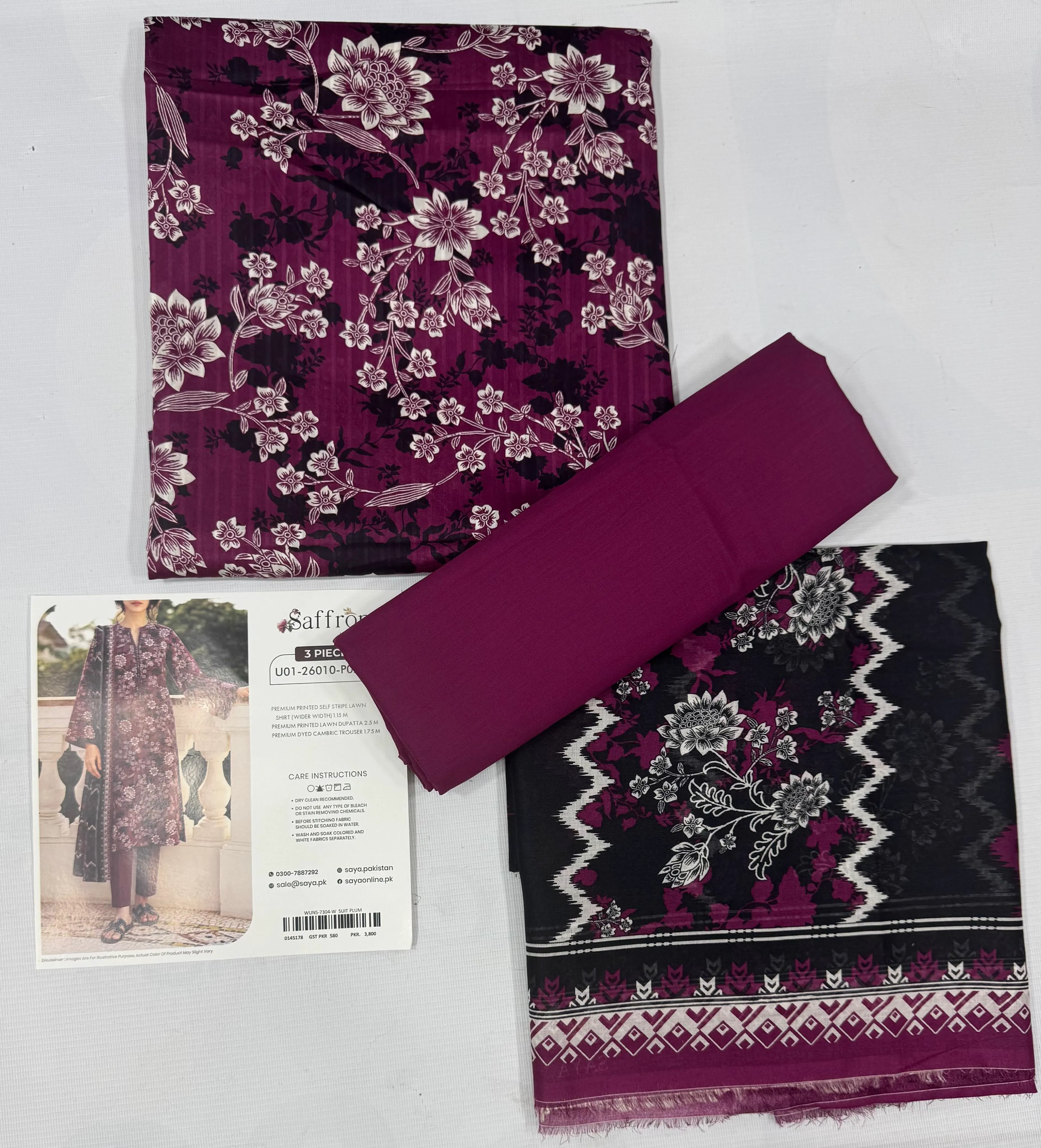 SAFFRON BY SAYA PRINTED SELF STRIP LAWN 3 PIECE-US1025