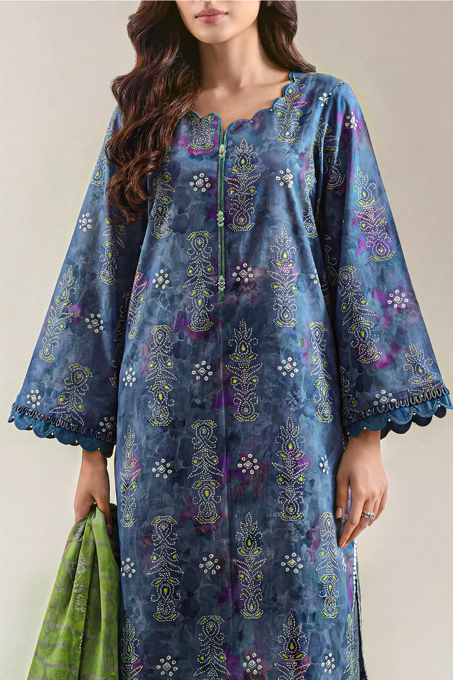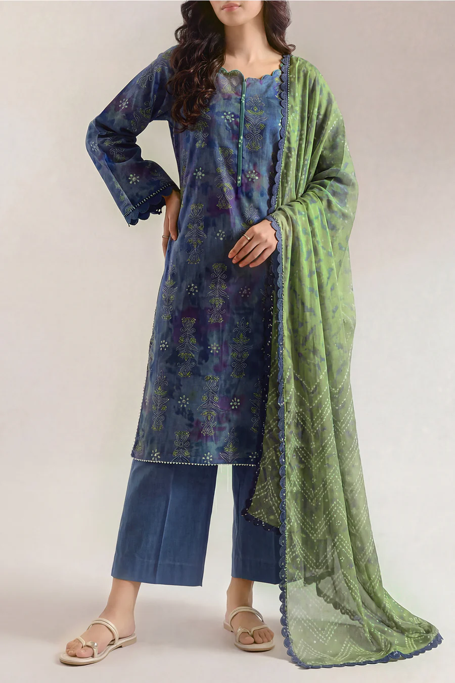 SAYA Unstitched Printed Lawn 3-Piece set is made from breathable lawn fabric with cheerful printed motifs that bring lively style to custom outfits. This ensemble includes unstitched panels for the shirt, a matching dupatta, and a coordinated trouser, giving you full freedom to tailor each piece to your preferred fit and design. Lightweight and versatile, this set blends expressive prints with comfortable fabric for effortless everyday wear and seasonal appeal.