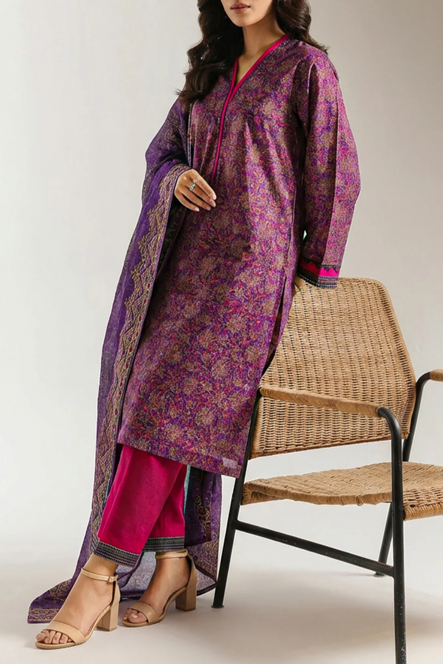 SAYA Unstitched Printed Lawn 3-Piece set is crafted from breathable lawn fabric with bright printed motifs that bring lively style to custom outfits. This ensemble includes unstitched panels for the shirt, a coordinating dupatta, and a matching trouser, giving you full freedom to tailor each piece to your preferred fit and finish. Lightweight and versatile, this set blends expressive prints with comfortable fabric for effortless everyday wear and seasonal charm.